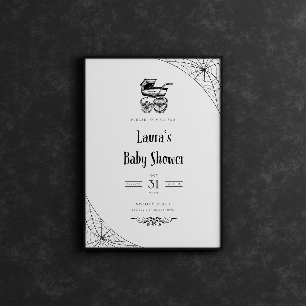 Gothic baby shower invitation, parents can still be spooky too! (Not everyone loves baby blue or bright pink!) Simply download to print at home to keep costs down or to take to your local print shop.